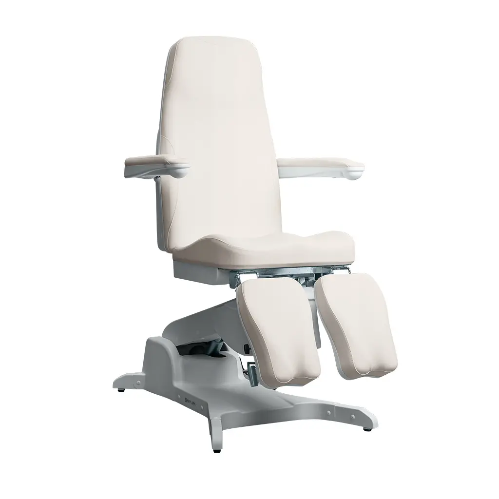 The Podo Platinum Chair allows you to work standing up and is designed for podiatrists who value comfort, efficiency and ergonomic working posture. With smart features like memory settings, 3D leg supports and step-in/out assist.